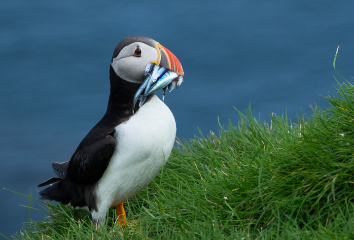 Like many marine birds, puffins spend much of their time at sea foraging for schooling fish. They can even drink seawater and expel the excess salt out of glands in their nostrils.